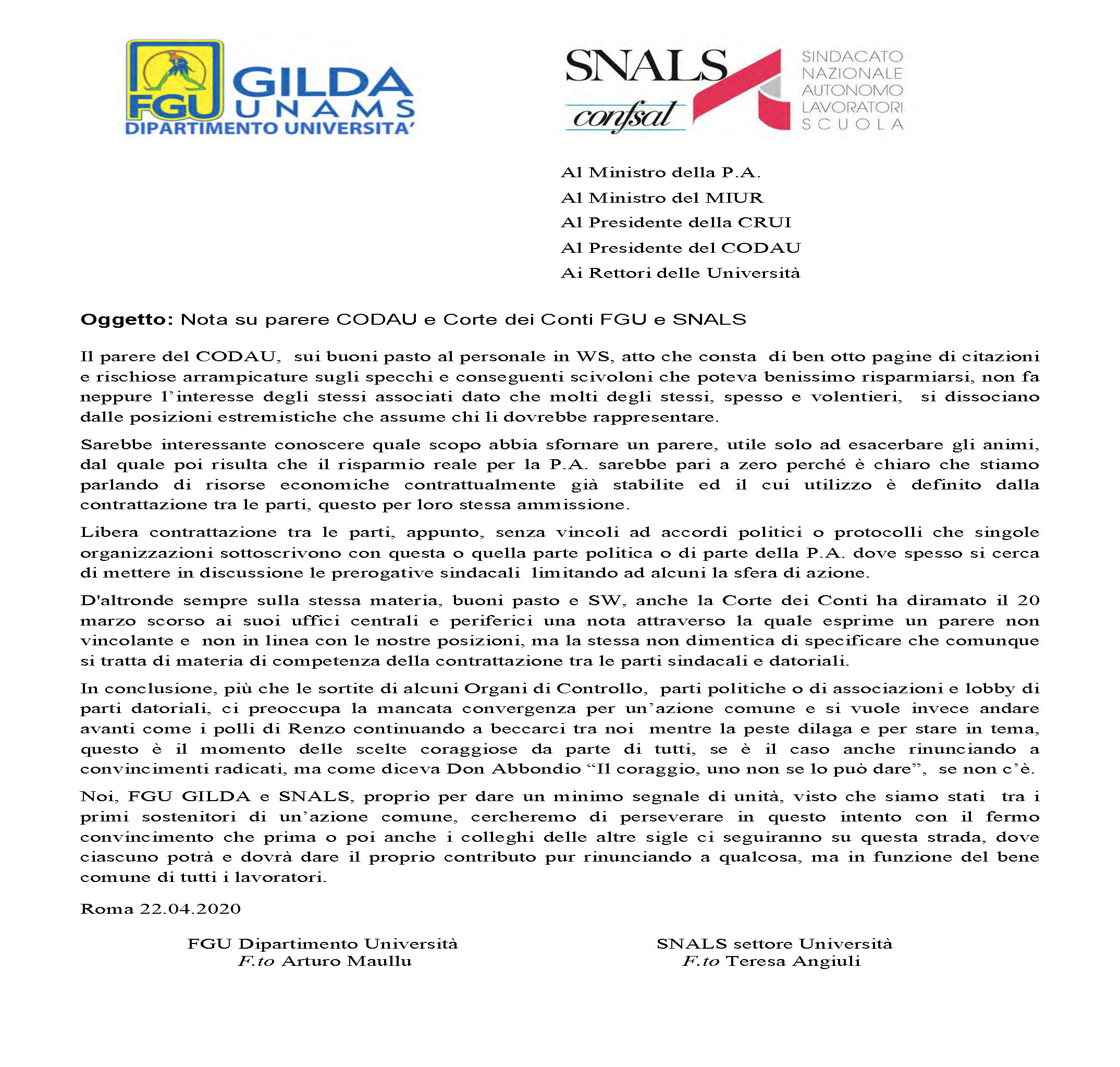 Risposta FGU a nota rettore. del 30-03-2020