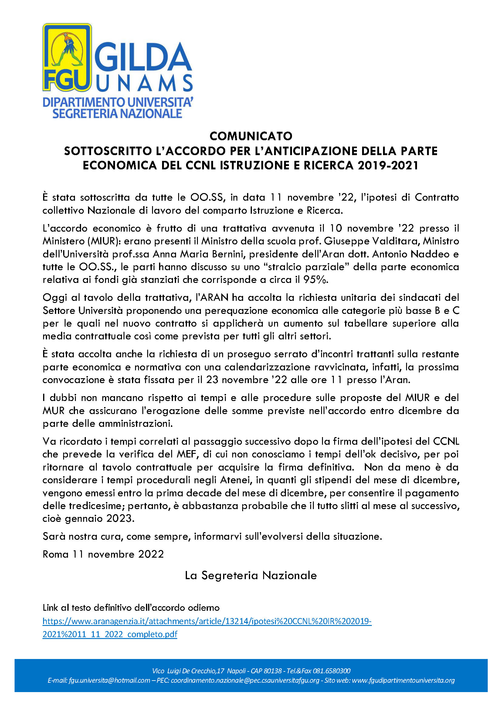 Link al testo definitivo dell’accordo odierno https://www.aranagenzia.it/attachments/article/13214/ipotesi%20CCNL%20IR%202019-2021%2011_11_2022_completo.pdf