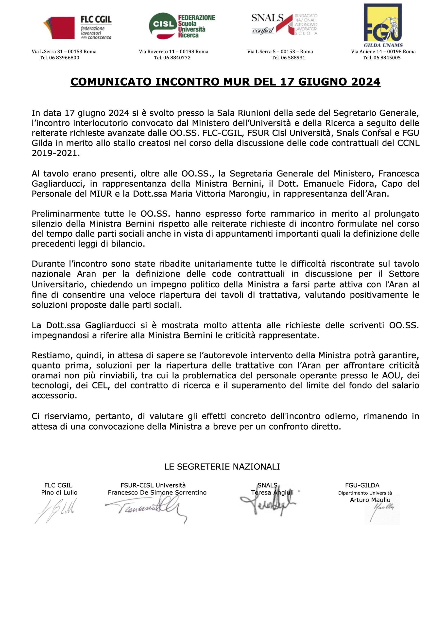 Redazione 0 COMUNICATO NAZIONALE Incontro FGU GILDA Dip. Università con il Segretario Generale del MUR