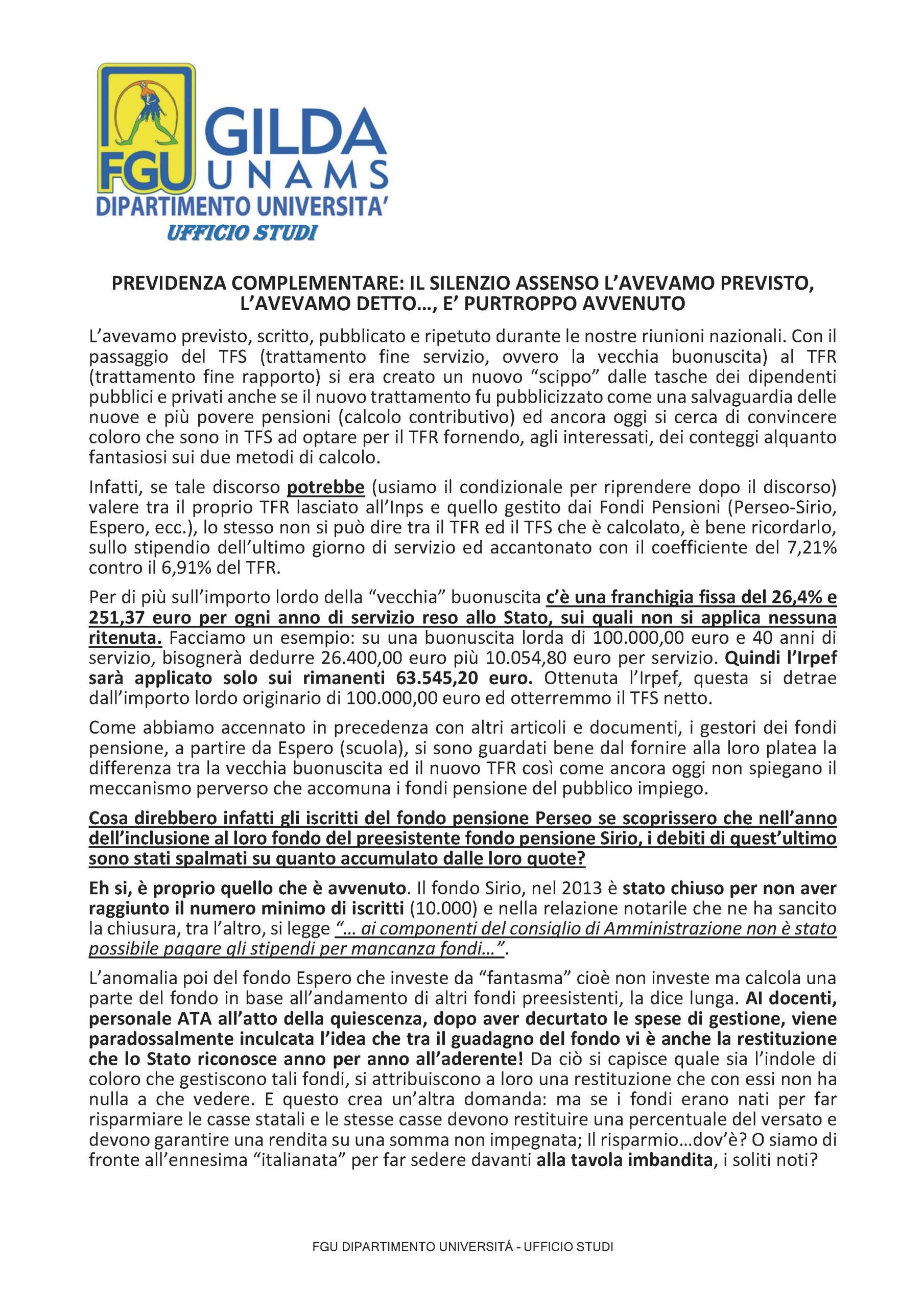 Resa fondo Perseo-Sirio 2023 – Regole previdenziali 2025 – RIA: sentenza Corte Costituzionale n.4 dell’11.04.2024 – Circolare Ministero del Tesoro – Ragioneria Generale