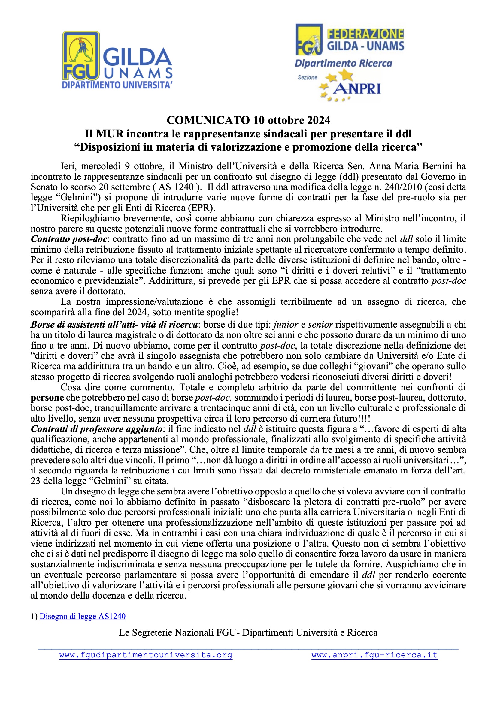 Comunicato Resoconto incontro OO.SS. – M.U.R. del 29.05.2025