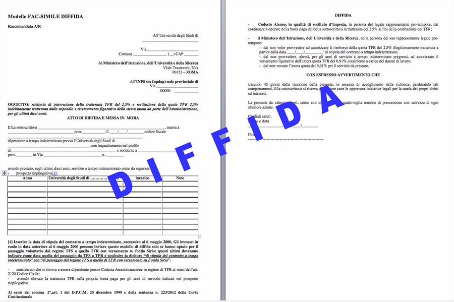 Ricorsi tassazione 2,5% TFR personale assunto post 2000 - Mod. Diffida Nota dell’Ufficio Studi :…